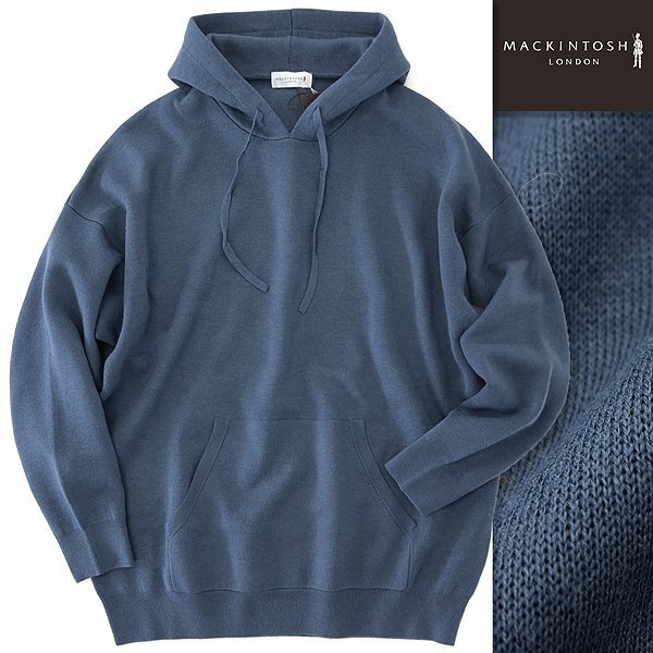 > 新品 4.4万 マッキントッシュロンドン ウール ダンボール ニット パーカー L 青 【I54480】 秋冬 プルオーバー フーディー フード セーター