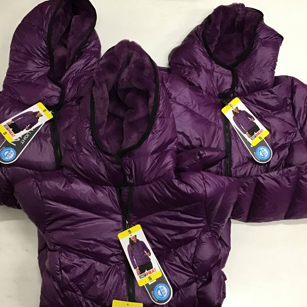 - 《 H 546 》★新品未使用3枚まとめ★32D DOWN ジャケット レディース コストコ仕入れ 定価5778円 お買い得 アウター Sサイズ 紫 タグ付き