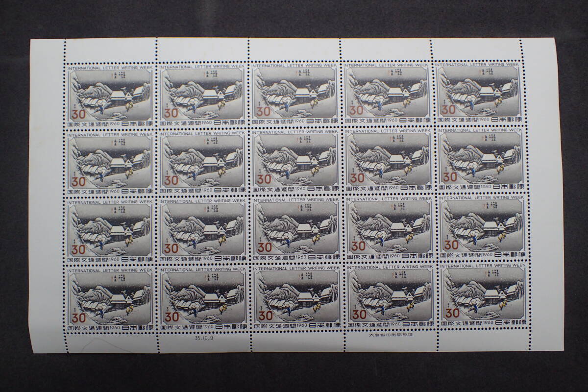 - ◆希少◆日本切手 1960年 国際文通週間 蒲原 未使用 シート◆美品◆