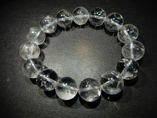 - 高級天然石BD7606 本水晶(白)プレスレット 超極上級美品14.5mm曇りあり大粒