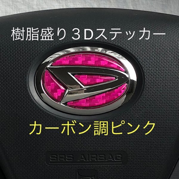 > ダイハツ ステアリング エンブレムシート カーボン調ピンク ハンドル用 SDH-D01 樹脂盛立体3Dシール ZEROWIN 簡単取付 ドレスアップ