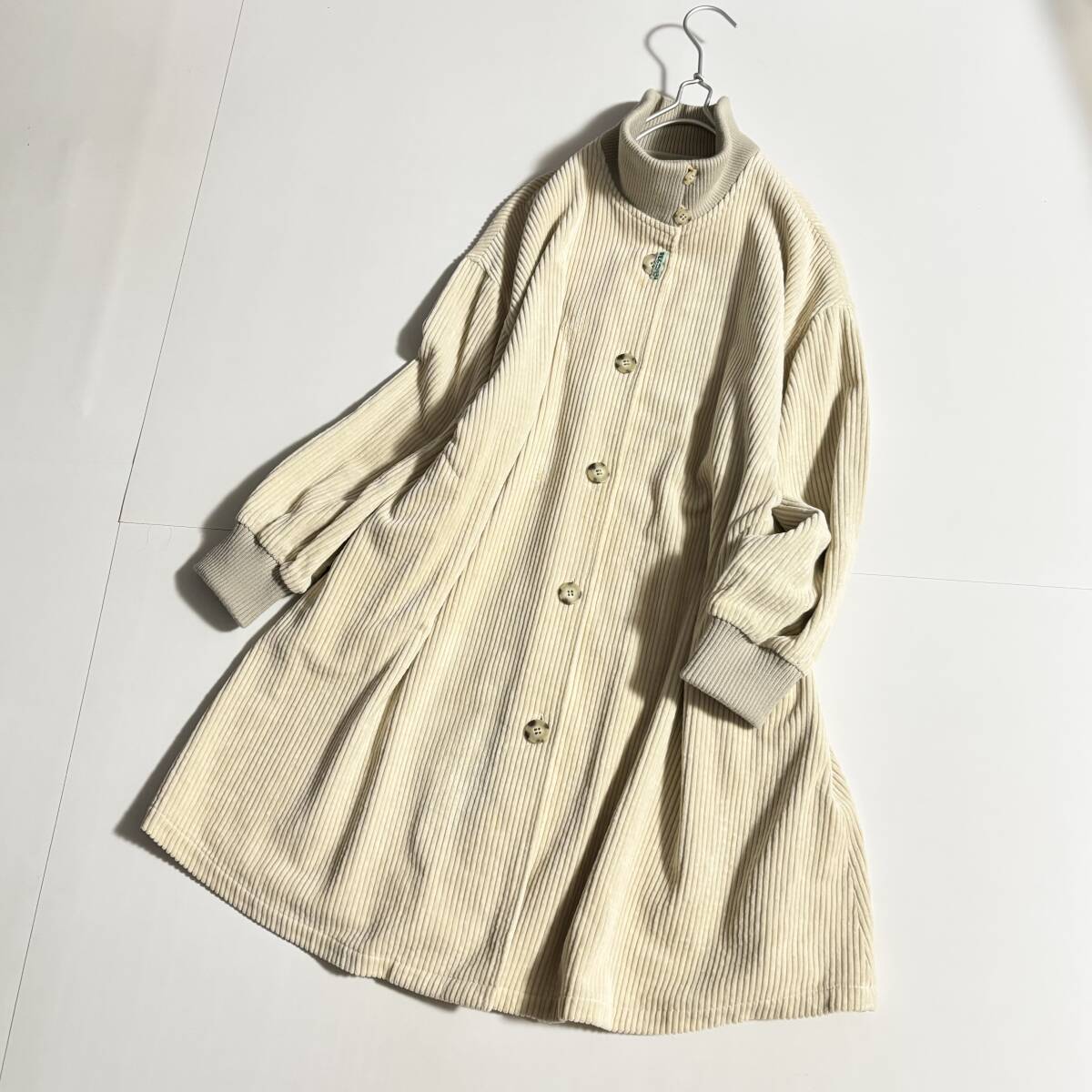 - 横浜元町 GRAPE グレープ ゆったりサイズ // アイボリー系 コーデュロイ調 コート *60