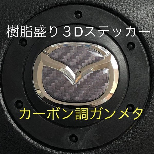 - マツダ ステアリング エンブレムシート カーボン調ガンメタ SDH-M01 樹脂盛立体3D ハンドル ZEROWIN MAZDA 簡単取付
