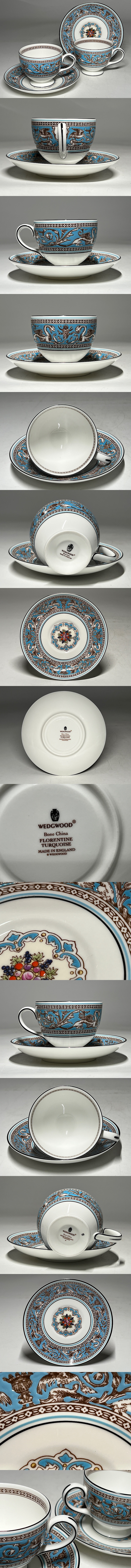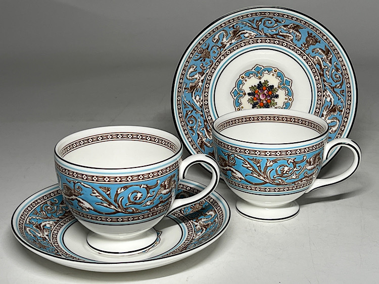 - 【瑞】ウェッジウッド WEDGWOOD フロレンティーンターコイズ カップ&ソーサー 2客セット