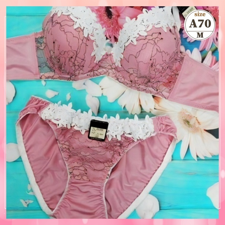 > Za7020◆新品 ブラショーツセット【A70/M】下着 ランジェリー 脇高 谷間メイク 線画リーフ ピンク