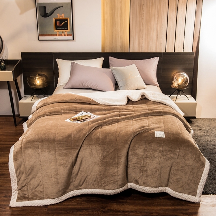 - 毛布 合わせ毛布 3層 厚手 ウォッシャブル 中綿入り 毛布 あったか フランネル シープボア 掛け毛布 暖かい 三層構造 布団 寝具