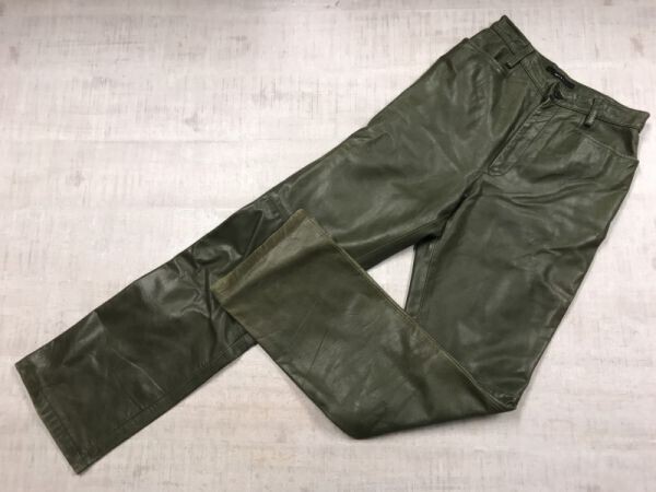 > MiXT 千趣会 ベルメゾン オールド レトロ モード 古着 ヒップポケット無し 本革 牛革 レザー パンツ ボトムス レディース 61-89 カーキ