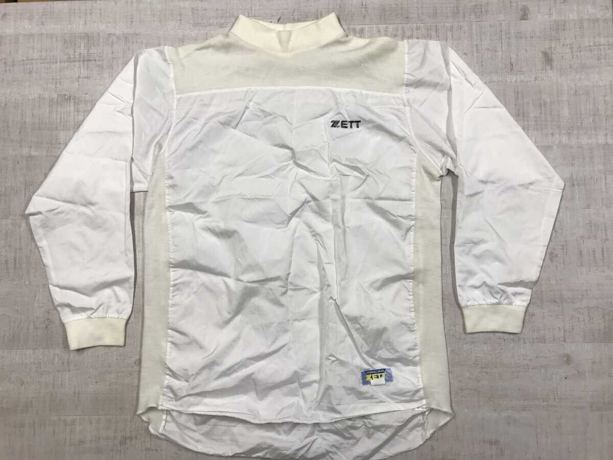 - ゼット ZETT レトロ スポーツ 野球 ベースボールウェア リブ切替 ボトルネック ストレッチ 長袖 トレーニング シャツ メンズ 日本製 O 白