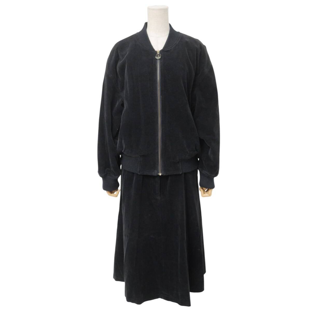 > TJ5734☆モスキーノ MOSCHINO コーデュロイ セットアップ アンサンブル ジップアップ中綿ブルゾン+フレアスカート ブラック 13/15