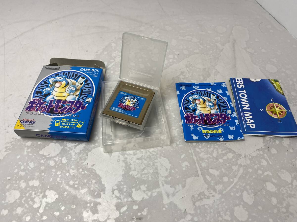 > 10/26 ①★ポケットモンスター 青★ゲームボーイ ソフト 箱、説明書あり ニンテンドー【中古品/現状品/動作未確認ジャンク】