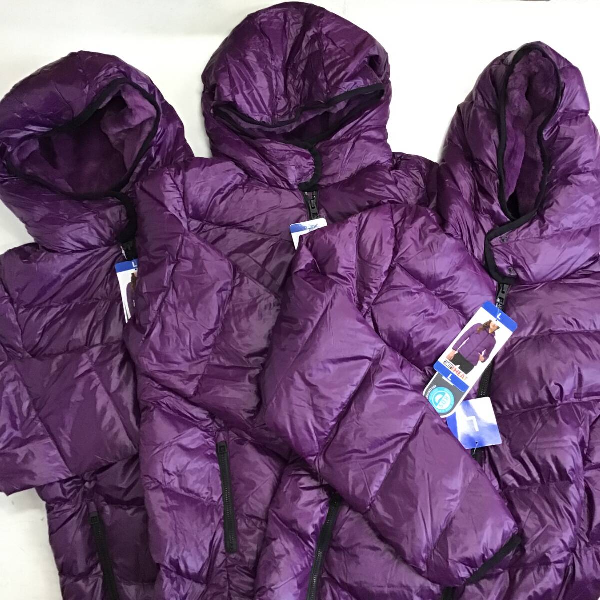 - 《 H 552》★新品未使用★32D DOWN ジャケット 3枚まとめ レディース コストコ仕入れ 定価5778円 お買い得 アウター Lサイズ 紫 タグ付き
