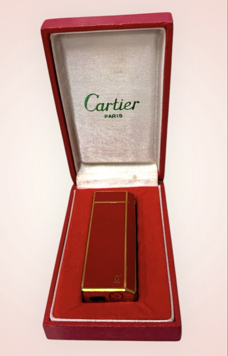- 【ジャンク品】Cartier カルティエ ガスライター 五角形 赤 ゴールドカラー