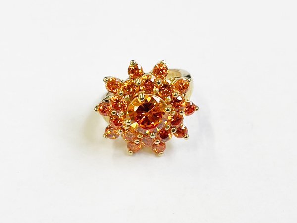 - 指輪 リング 925 silver キュービックジルコニア フラワー 花 太陽 モチーフ カクテル ジュエリー/ゴールド/オレンジ/11号/1円スタート/AY