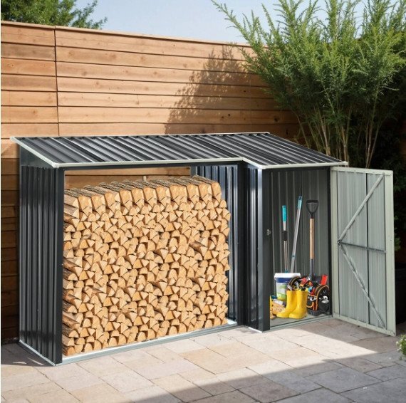 > 迅速配送・薪小屋&収納庫 L270xW92xH158cm 屋外 屋根付き 薪ラック 耐荷重300KG 物置 薪棚 薪ストッカー 薪置き棚 薪ストーブグッズ