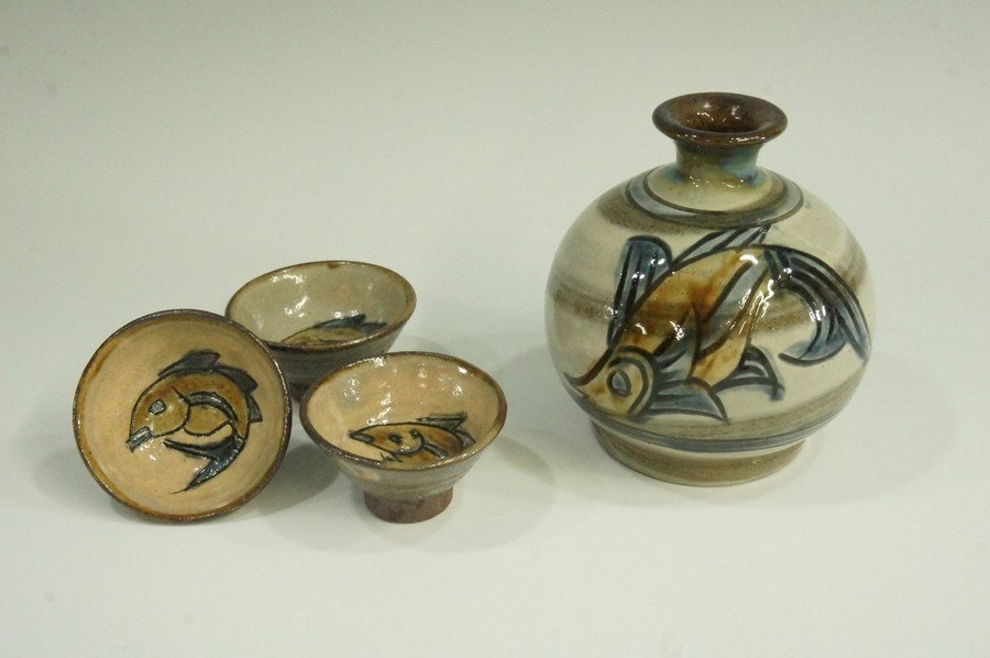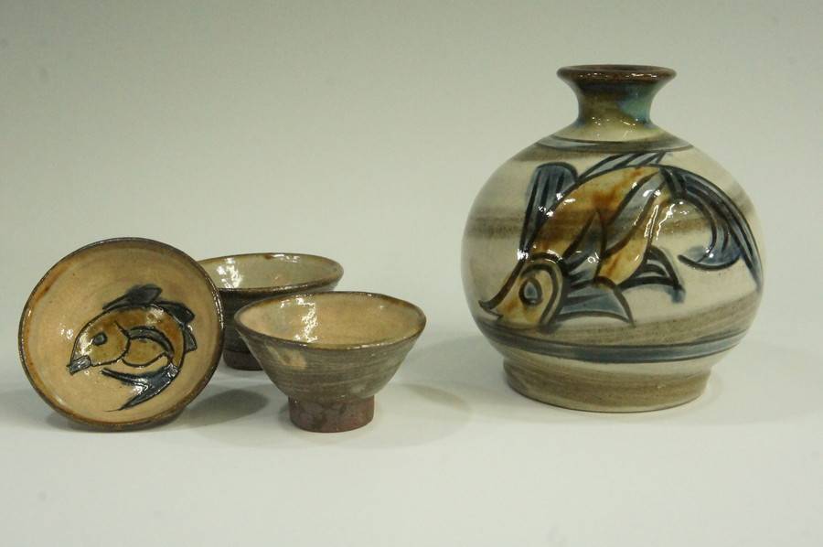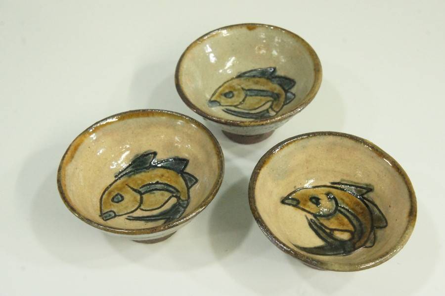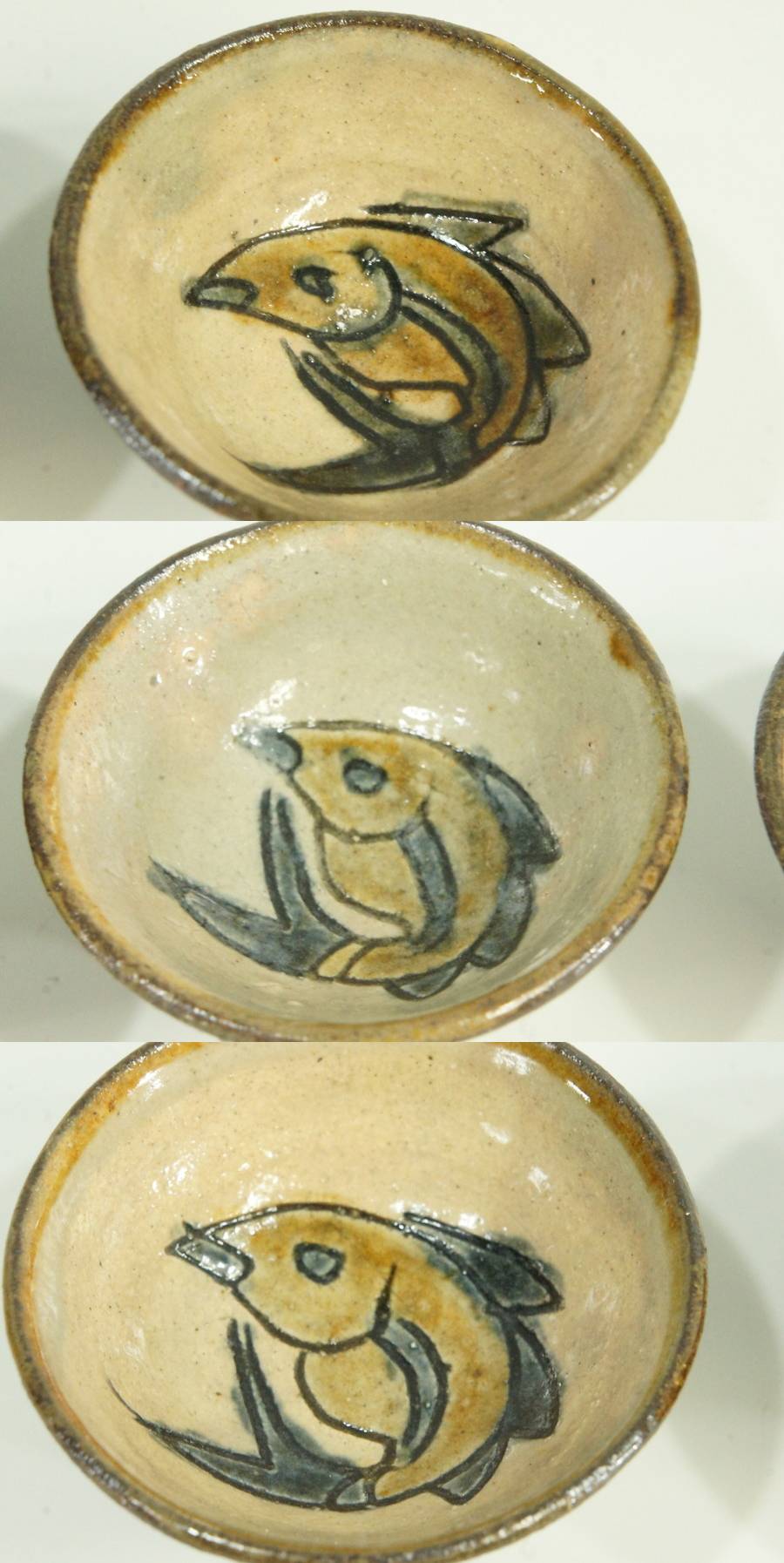 銘のない魚文ぐい呑3点の酒器4点セットです。