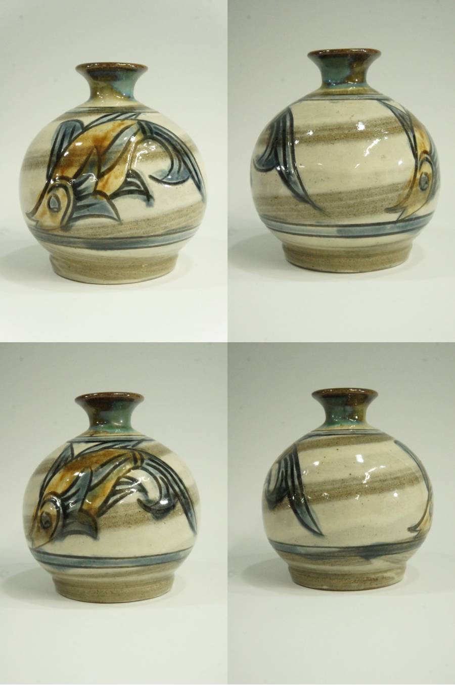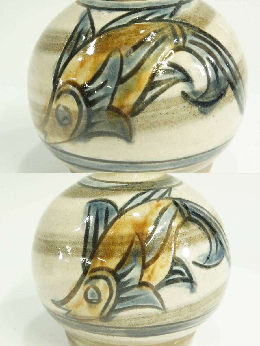 壺屋焼の人間国宝・金城次郎の親戚に当たる金城敏幸の魚文徳利と、