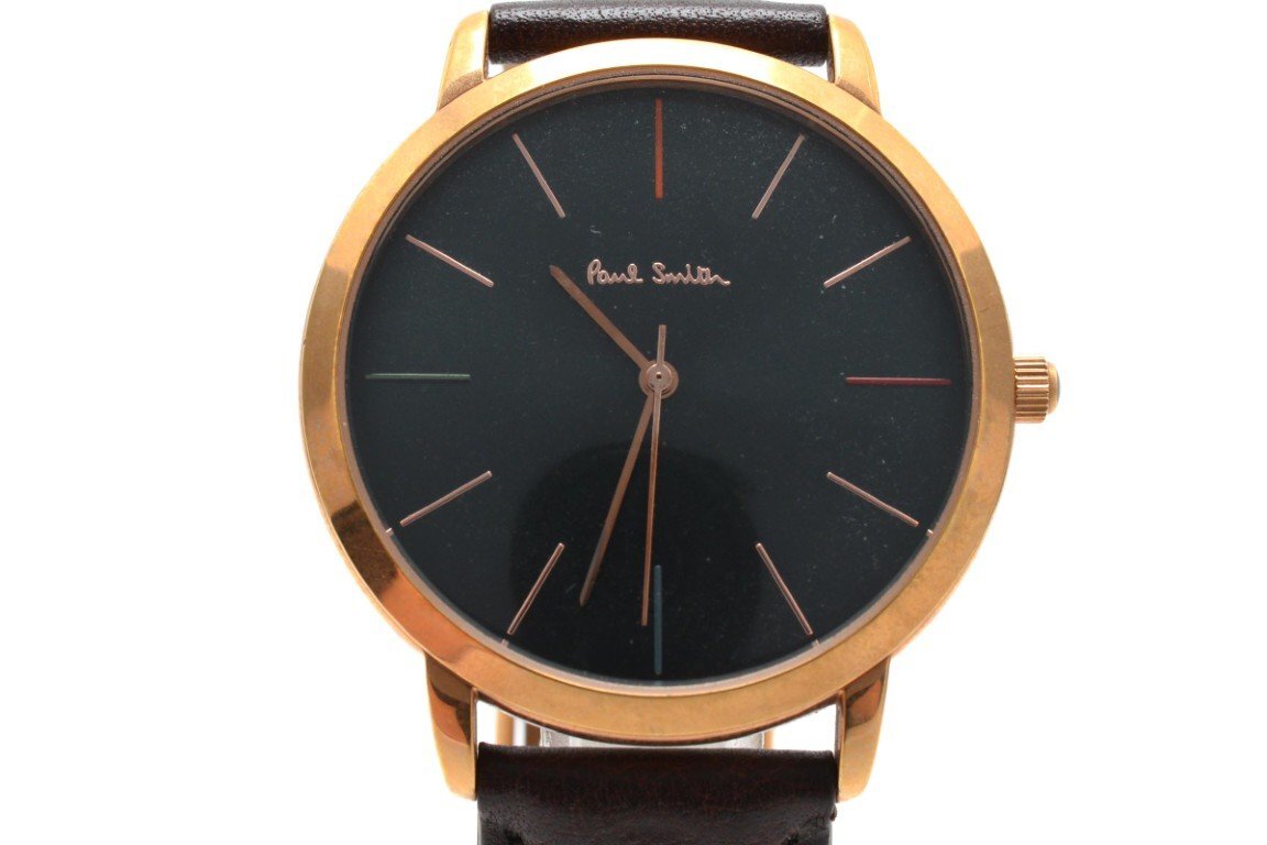 > Paul Smith ポールスミス ピンクゴールド ラウンド 黒文字盤 レザーベルト 3針 レディース クォーツ 腕時計