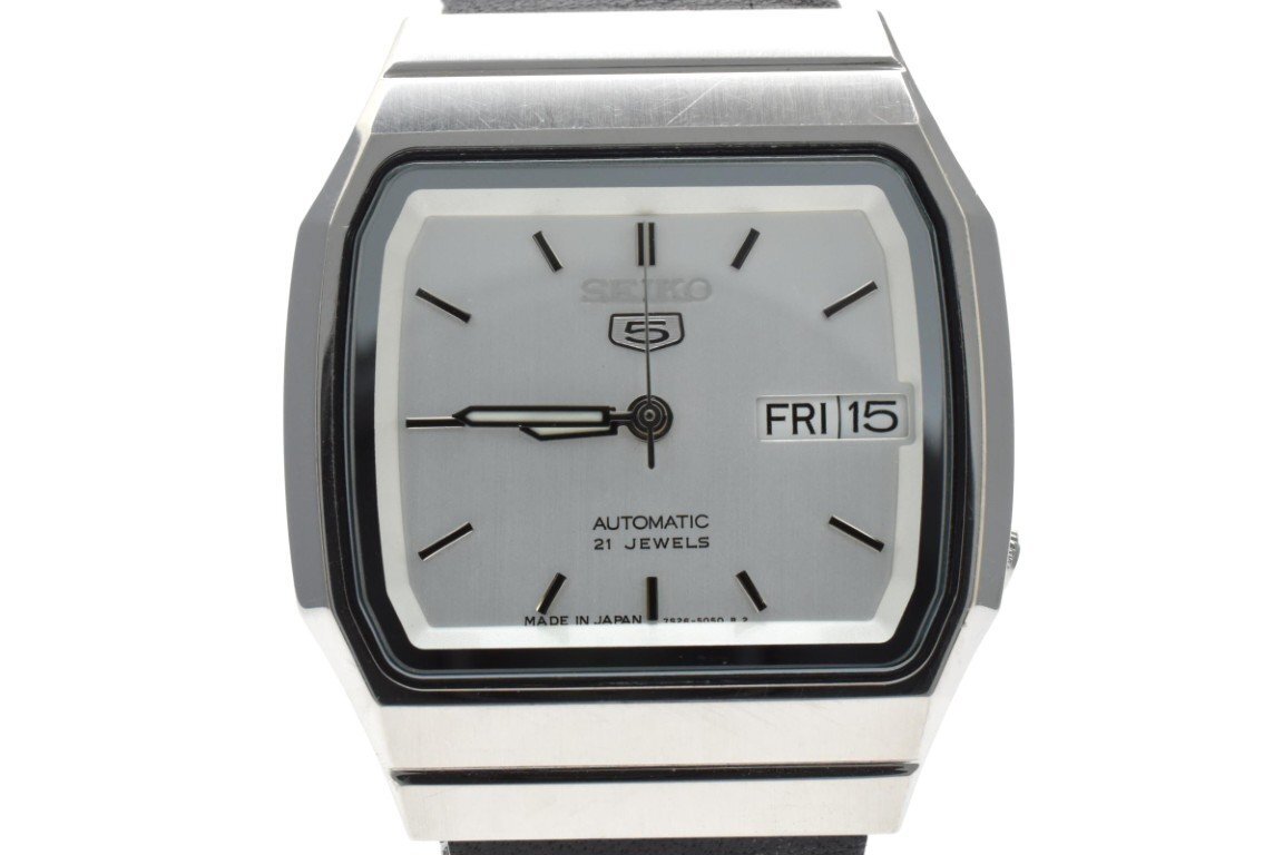 - 稼働品 SEIKO 5 AUTOMATIC セイコー ファイブ 自動巻き スクエア 腕時計 メンズ 3針 デイデイト ホワイト シルバー 7S26-00R0