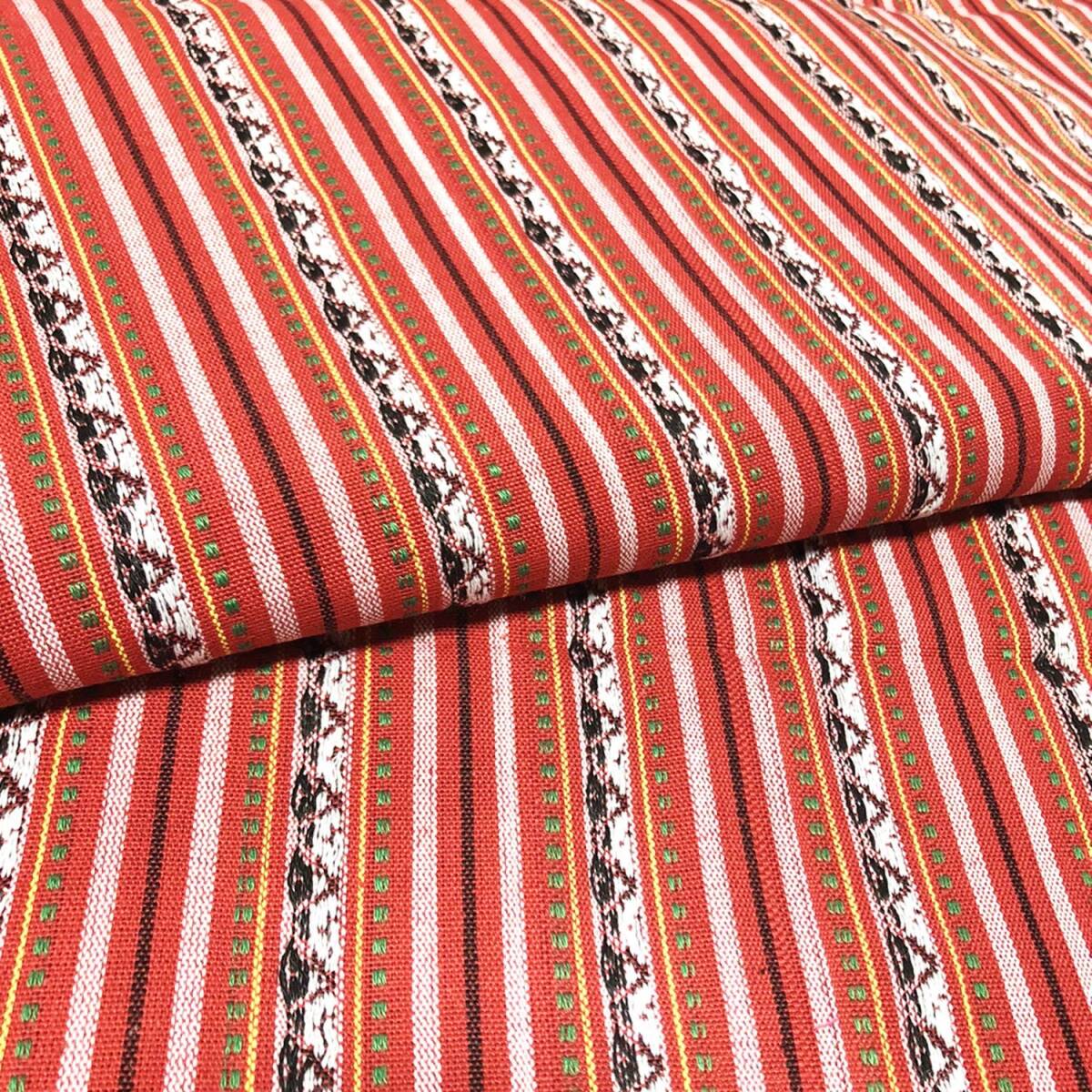 フォークロア エスニック 柄をしたハンドメイド用 コットンリネン 生地です。長さ:1m弱 幅:約1.5m パターン:ストライプC 重量:約330g(1?約220g)