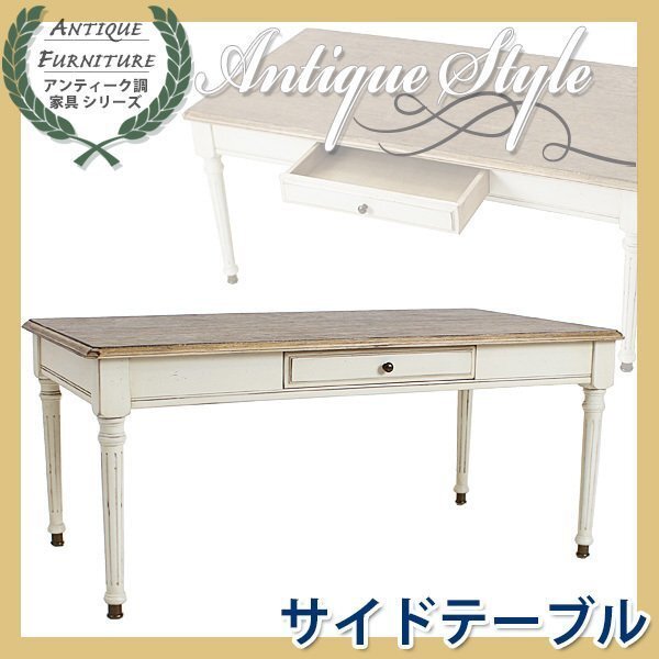 - アンティーク調 サイドテーブル 木製 家具 白 テーブル 引出し