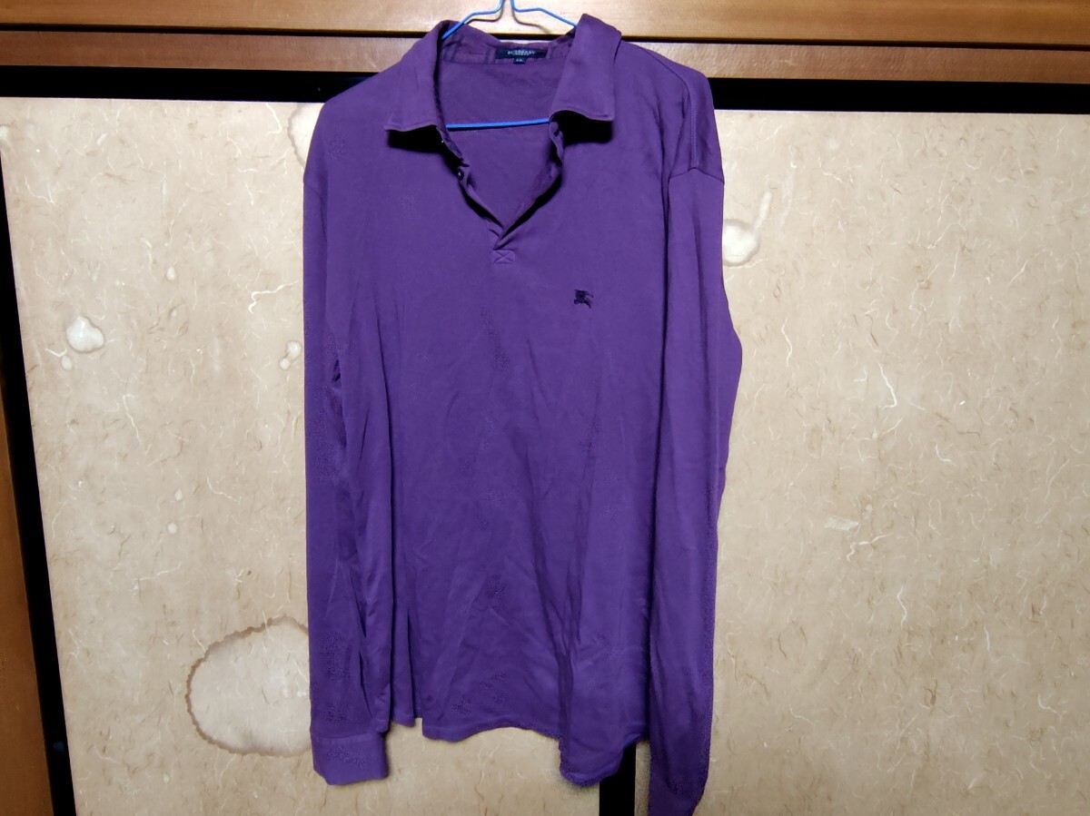 > バーバリーブラックレーベル BURBERRY BLACK LABEL XL 4 LL ホースマーク 長袖ボタン ロングTシャツ シャドーチェック パープル 紫 LONDON