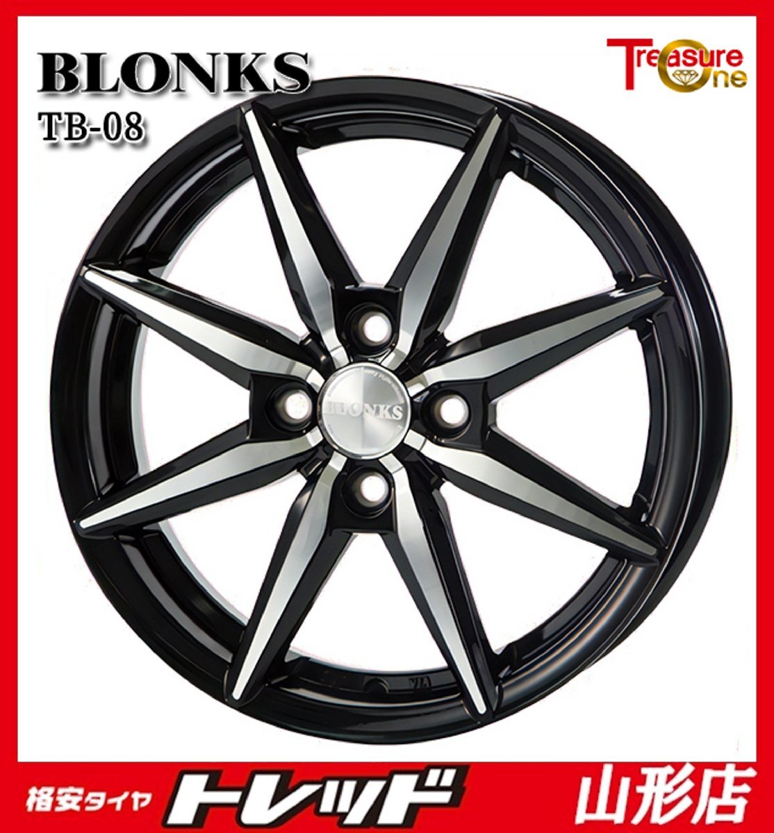 - 山形店 新品 アルミホイール 4本セット ブロンクス TB-08 15インチ 5.5J 4H100 +50 ブラックポリッシュ ノート フリード