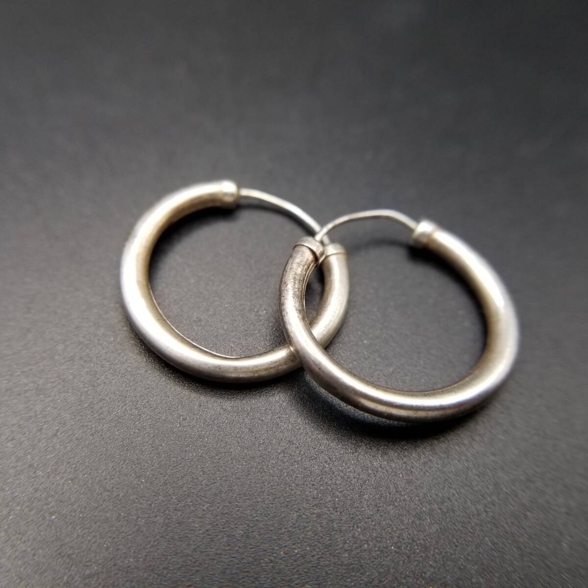 - シンプル ラウンド ヴィンテージ フープ ピアス シルバートーン シンプル 小ぶり 飽きないデザイン Y25-F