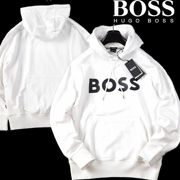 - 新品1円~★定価4.1万 BOSS ボス メンズ 最高級ライン コットン綿 ロゴ プルオーバーフーディー L ヒューゴボス パーカー 白 本物◆A3498◆