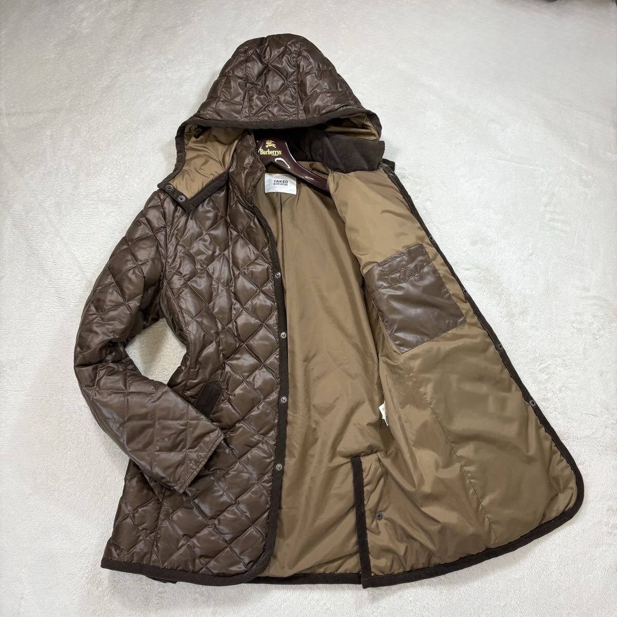 - 1円 TAKEO KIKUCHI タケオキクチ キルティング ダウン ジャケット コート アウター ブロンズカラー 2way フード取り外し可能 Lサイズ 美品