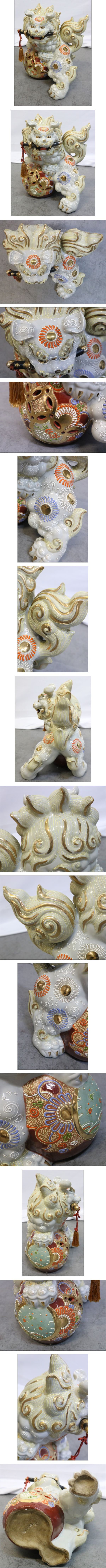 - 【ト足】九谷焼 縁起物 置物 魔除け 狛犬 玉乗り獅子 シーサー 陶器 全長約32cm 工芸品 骨董 古美術 アンティーク レトロ CO927CMM60