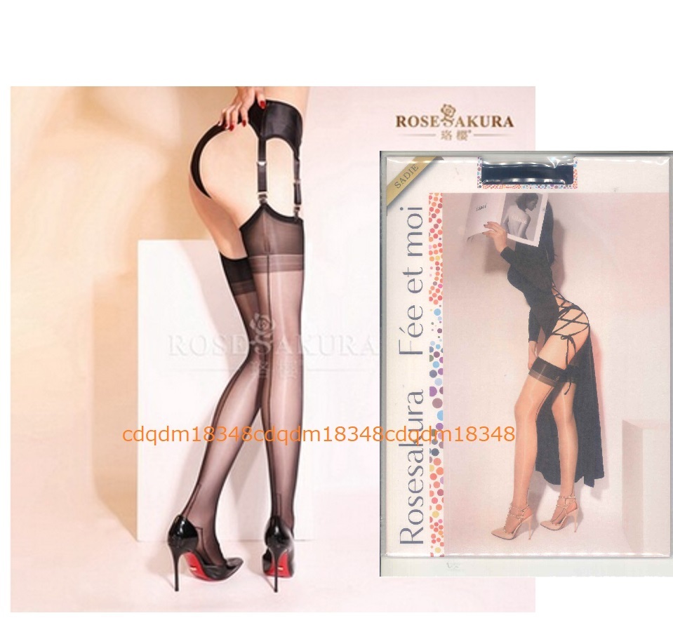 - ROSESAKURA/7251 超光沢黒/レトロ バックシーム マンハッタンヒールFFSデザイン足型ありガーターストッキング