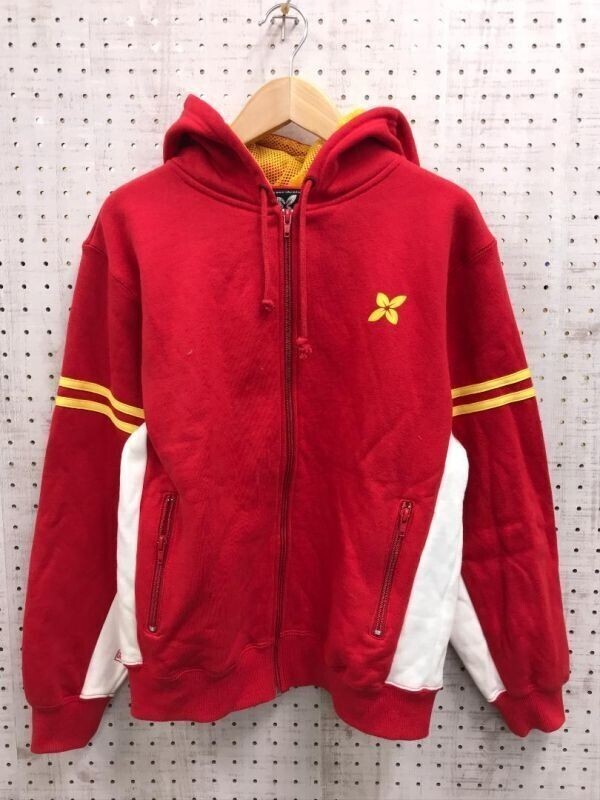 > RUSTY ラスティ メンズ オールド サーフ アメカジ 切替 フード裏メッシュ ジップアップ スウェット パーカー 赤×白 M