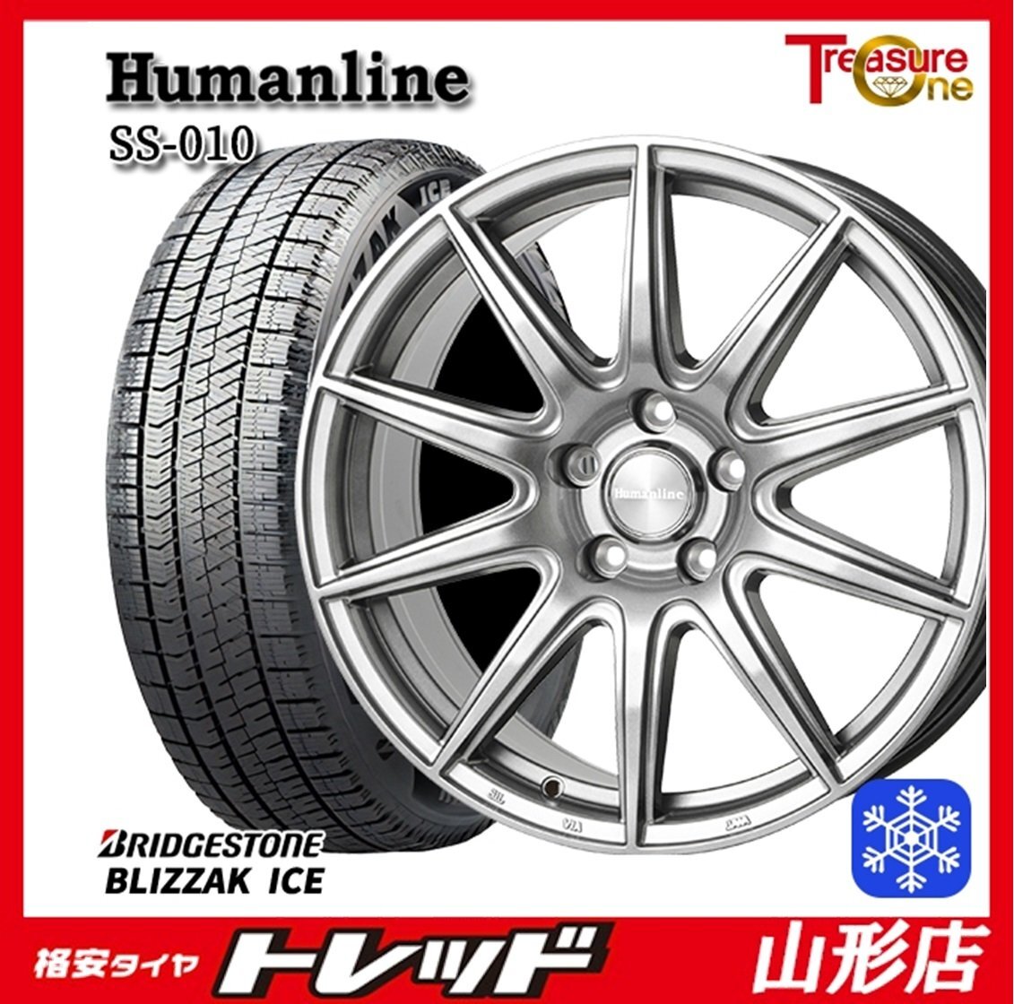 > 山形店 新品 冬タイヤホイールセット Humanline SS-010 17インチ 7.0j 5H114.3 +48 DG ブリヂストン ブリザックアイス 225/50R17 2022年製