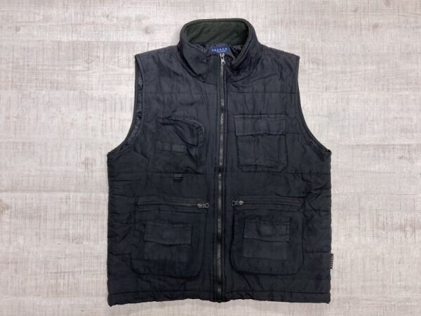 > FRESCO フレスコ メッシュポケット ハイネック ジップアップ メンズ 多ポケット オールド アウトドア ユーティリティー 中綿 ベスト L 黒