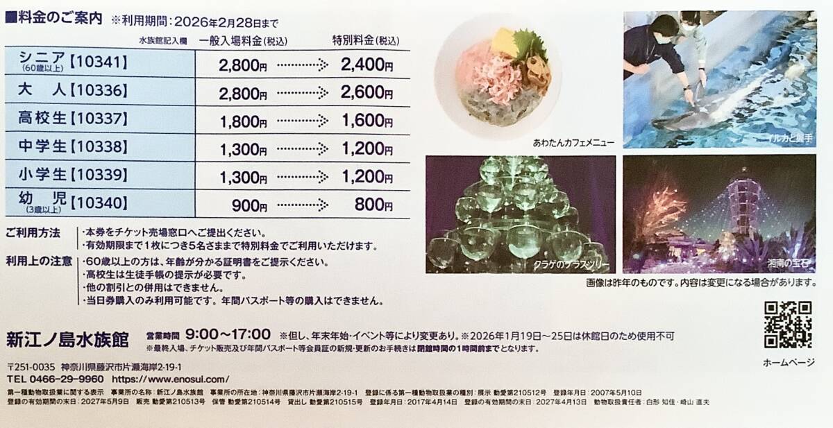 - 新江ノ島水族館 お得なクーポン→期限2.28/送85〜