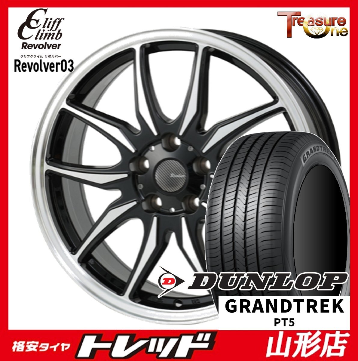 > 山形店 新品タイヤホイールセット CliffClimbリボルバー03 18インチ7.0j 5H114.3 +48 BP ダンロップ グラントレックPT5 235/60R18 2024年製