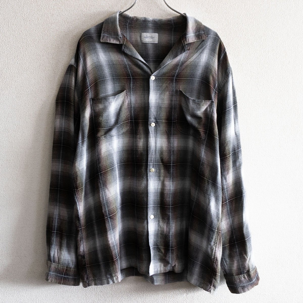> 【雰囲気抜群】TOWNCRAFT【オープンカラーレーヨン オンブレチェックシャツ】L ボックスシルエット タウンクラフト 復刻 25101076