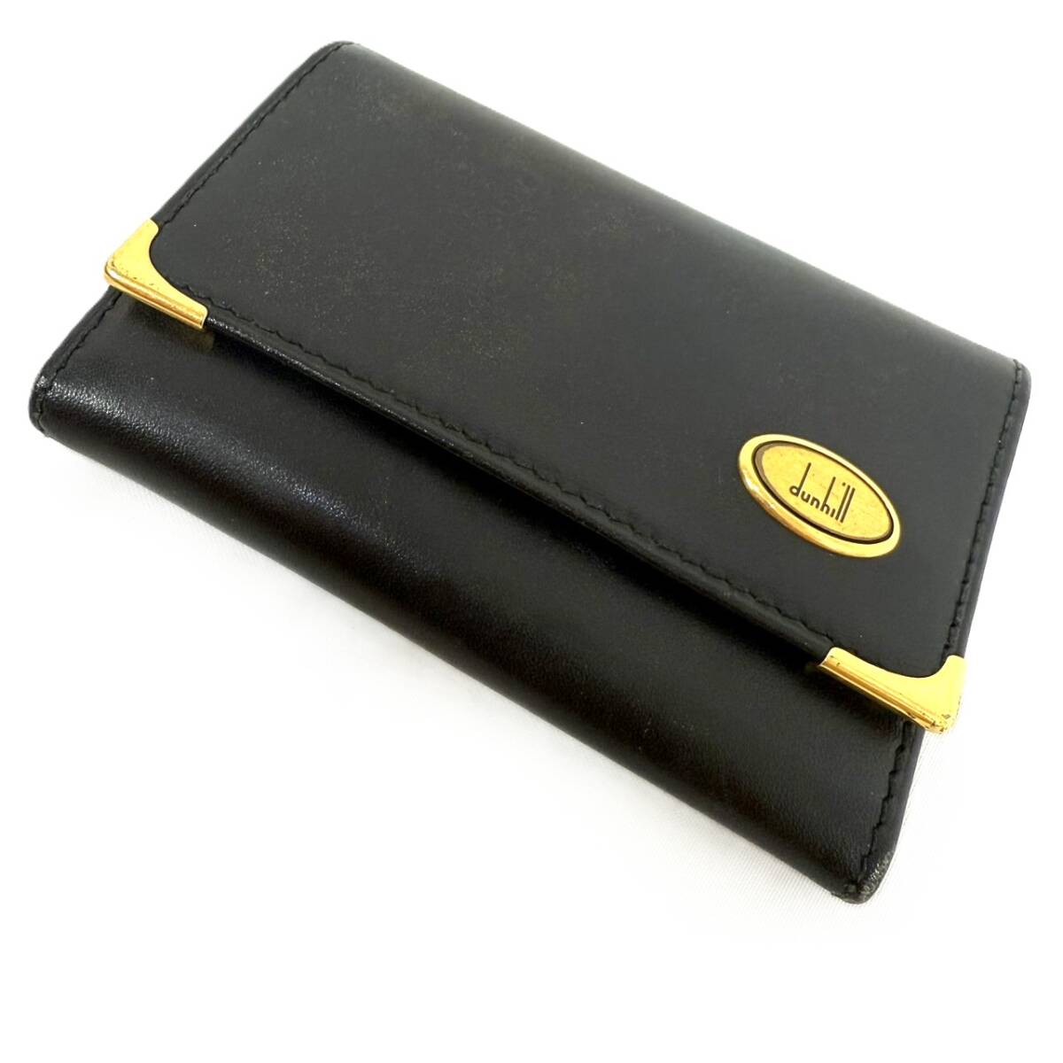 - 9802 ダンヒル dunhill キーケース 6連 レザー ロゴ ブラック ゴールド 金具 カラー メンズ シンプルデザイン ロゴプレート ブランド