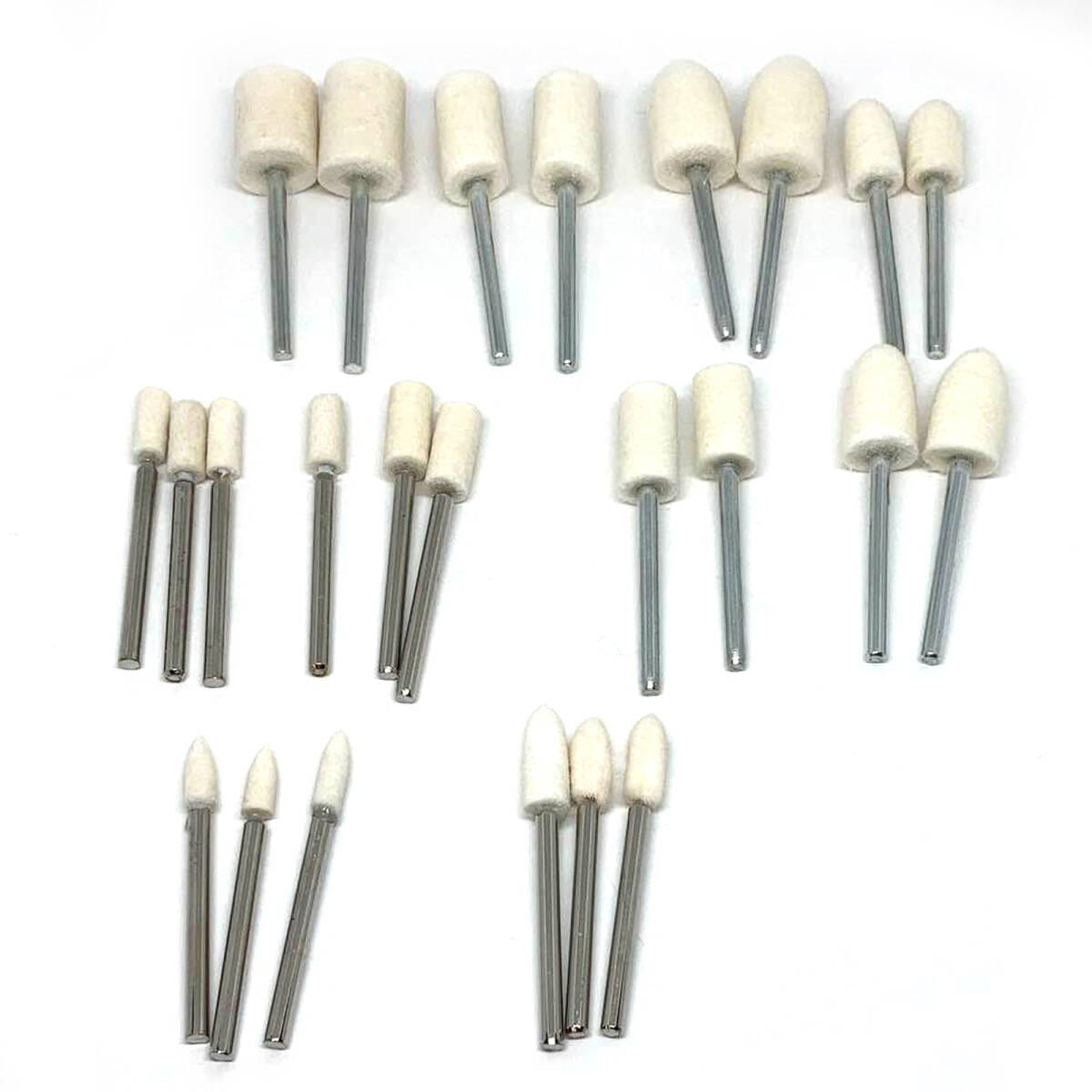 - リューター バフ 羊毛 フェルト バフ 3mm 軸 24個セット 円筒型 砲弾型 研磨ヘッド バフ 金属磨き 仕上げ 鏡面研磨用 ;J1036;