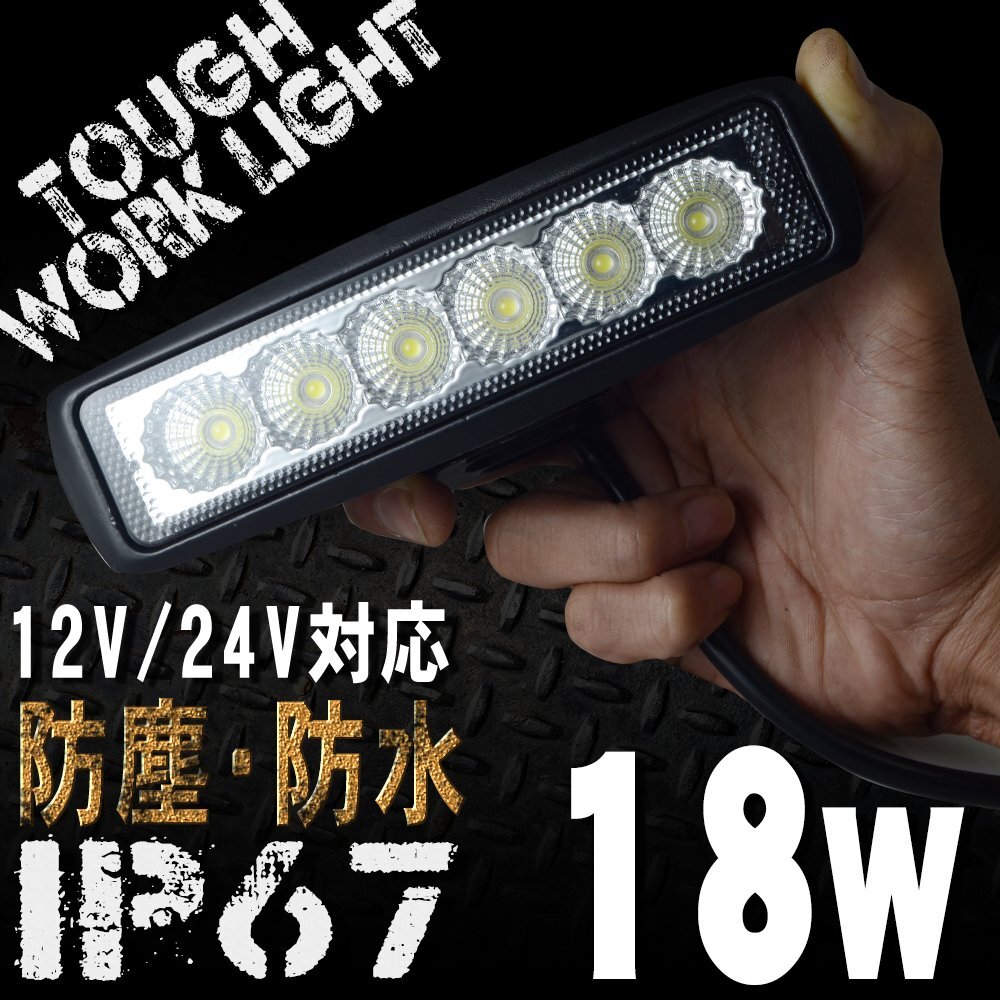 - 長方形型 LEDワークライト 18W 6連 12/24V対応 白 LEDライト 投光器 広角 LED作業灯 サーチライト 防水 防塵 軽トラ トラック 荷台灯 船