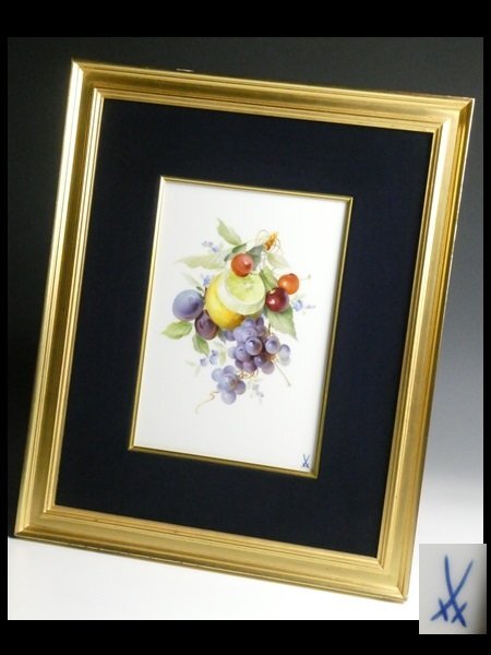 > マイセン Meissen ハンドペイント フルーツ&フラワー 大型 プラーク 陶板 飾額 43cm N746