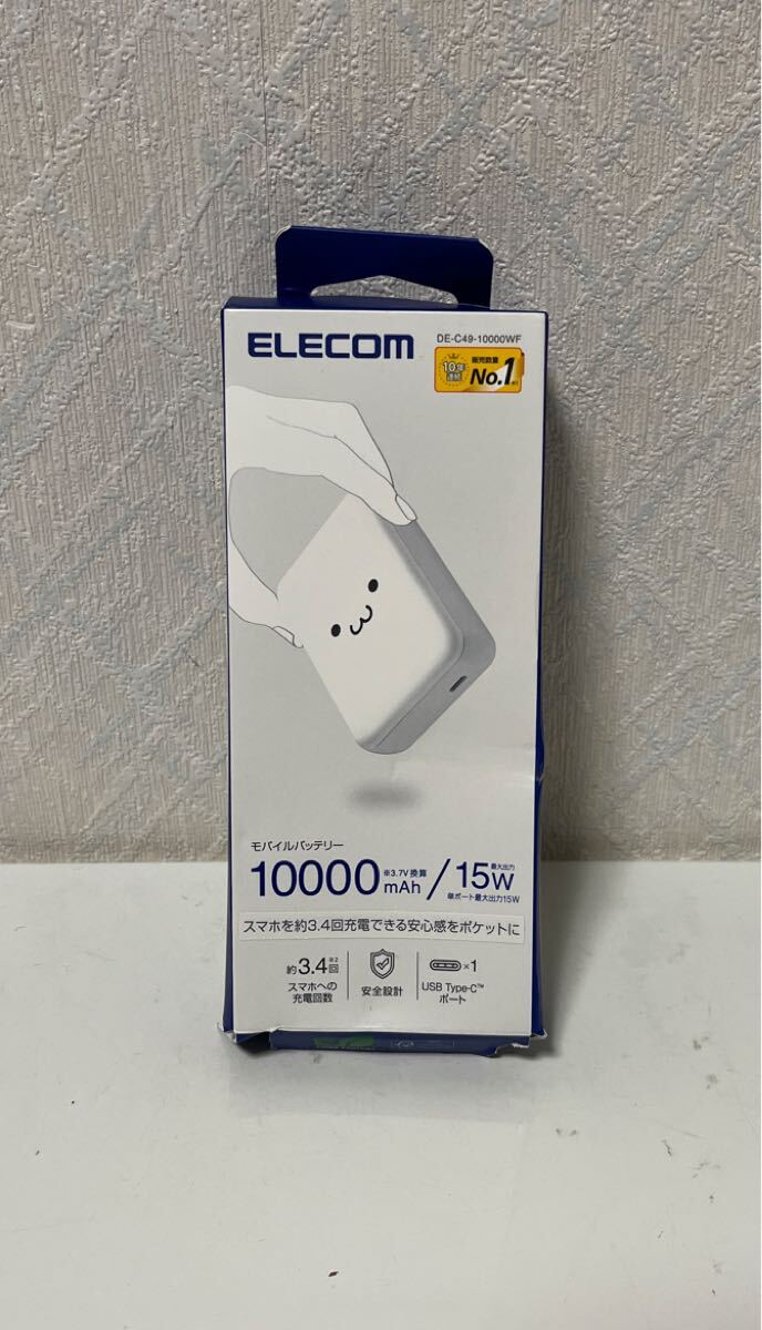 - 710i2905 エレコム モバイルバッテリー 15W 10000mAh Type-C 1ポート 入出力 小型 軽量 しろちゃん DE-C49-10000WF