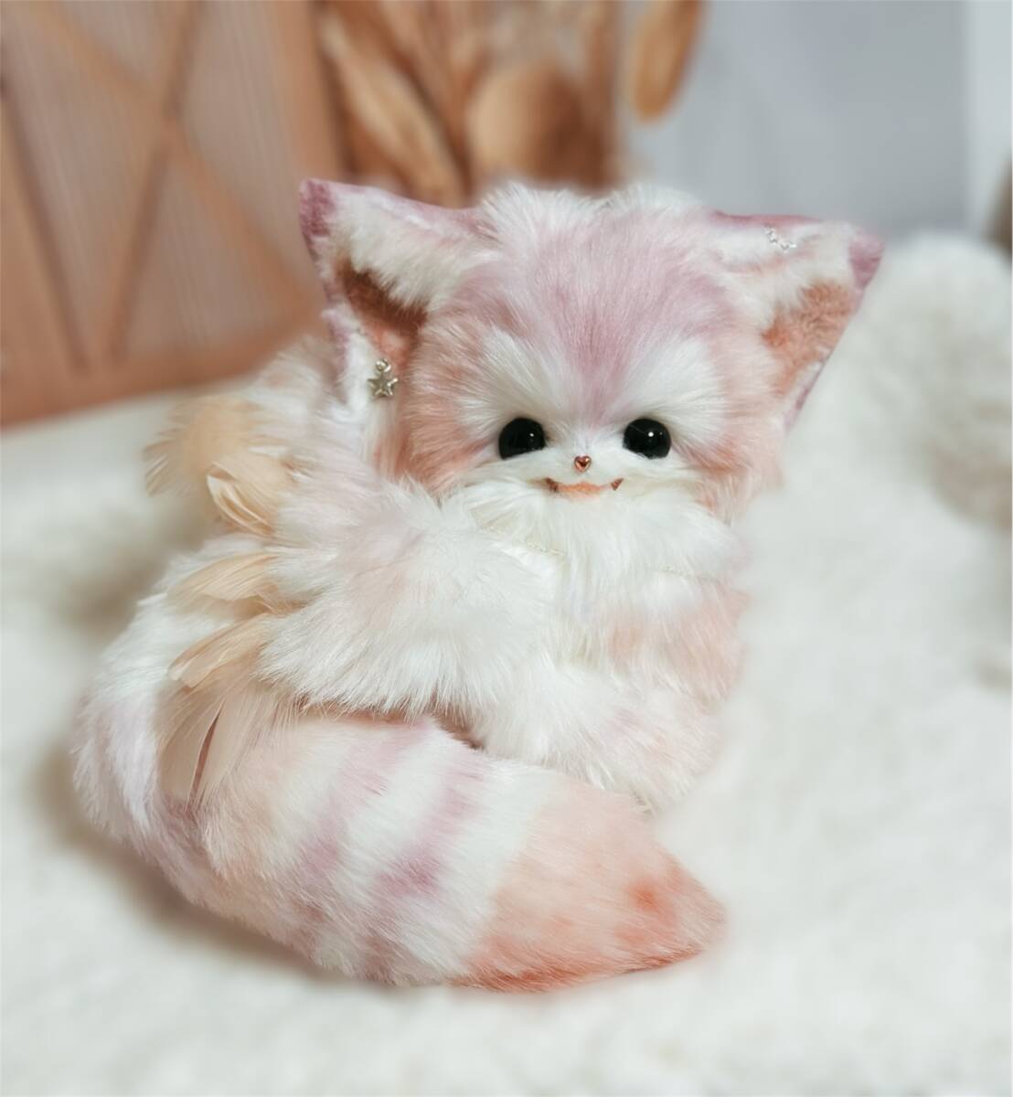 - 幼獣ちゃん〈花〉アートドール ぬいぐるみ ハンドメイド 幻獣 幼獣 天使 ピンク 紫 白 可動 ~U.cuddle〜