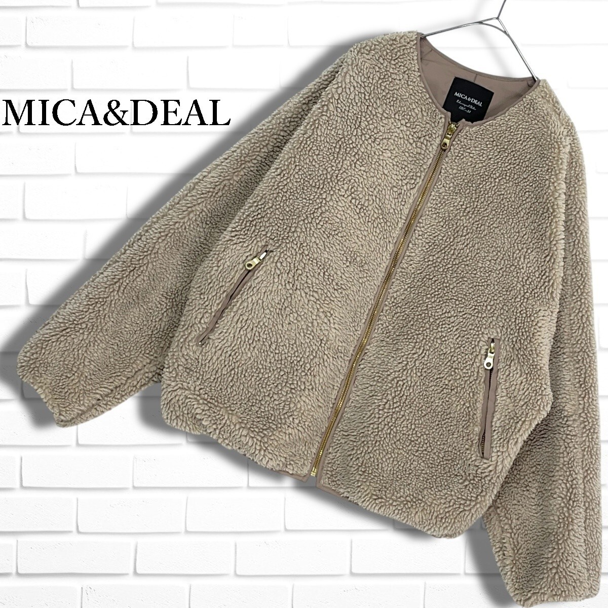 - ◆良品◆ MICA&DEAL マイカ&ディール ボア ゆったり♪ ノーカラー ジャケット ブルゾン ベージュ系 レディース ◆送料無料◆ 5795J◇