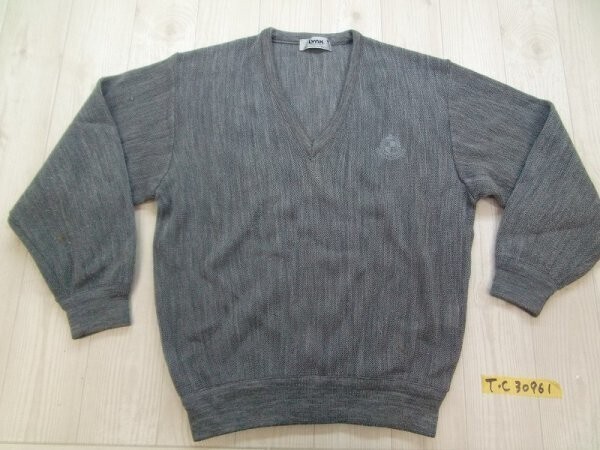- LYNX リンクス メンズ ゴルフ 胸刺繍 Vネック ニットセーター アクリルウール M グレー