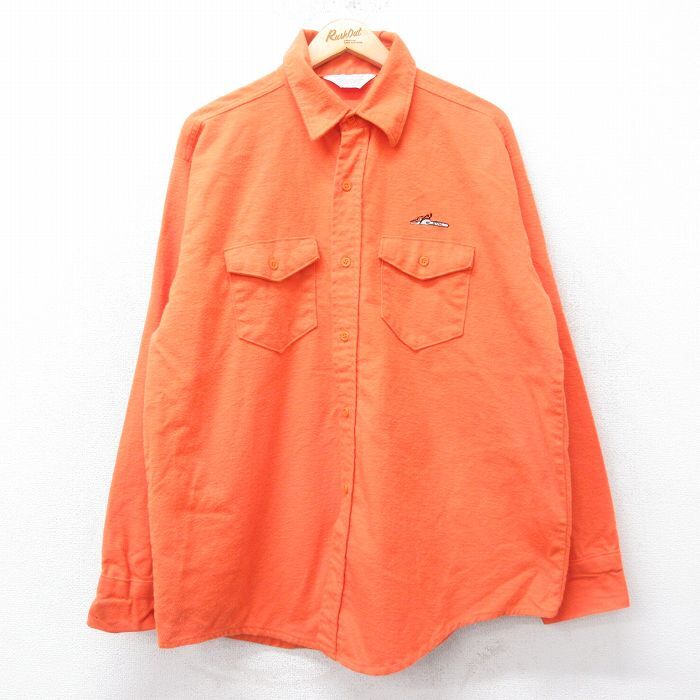 - XL/古着 長袖 ヘビー フランネル シャツ メンズ 70s チェーンソー 大きいサイズ コットン オレンジ spe 25oct27 中古 トップス
