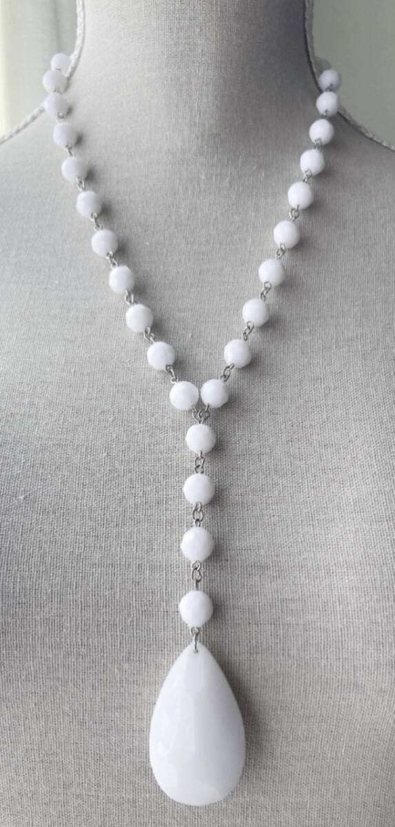 - 送料無料■ネックレス Y字 ホワイト 大ぶり アクリル しずく 多面カット 美品■Vintage jewelry accessoriesF0358