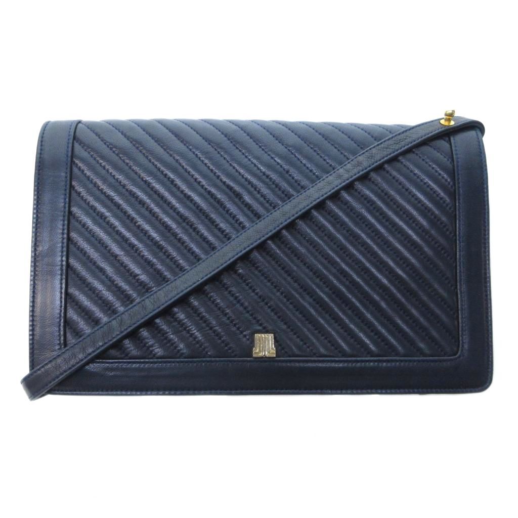 - ランバン LANVIN レザー ショルダーバッグ 紺 ネイビー IBO81
