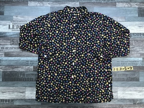 - レディース カラフルドット 花ボタン サイドスリット シアーブラウス ネイビー