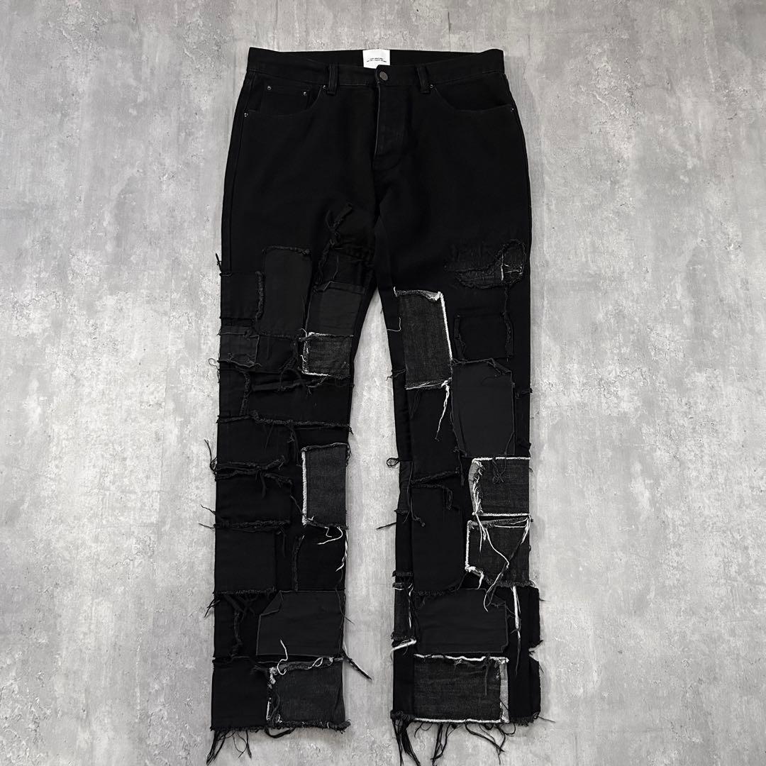 > コラボ MNML × KODY PHILLIPS ミニマム パッチワーク ブラックデニムパンツ W36 希少 リメイク 再構築 黒 ブラック